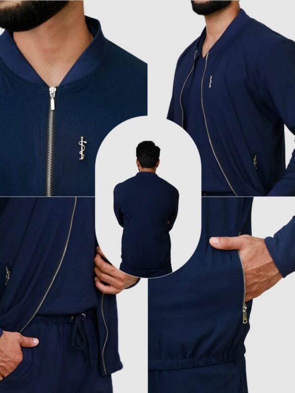 Doctor’s Jacket for Men | Navy Blue | Pockets with Zip | Stretchable